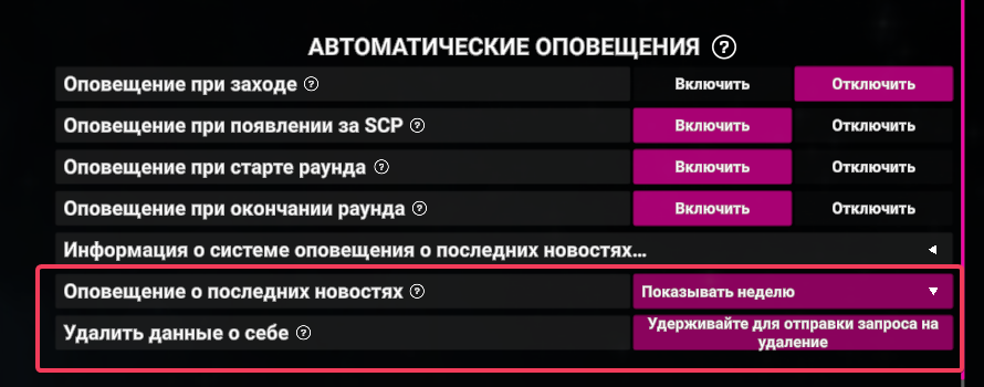 Да, в [server-specific-settings](https://kyles-project.gitbook.io/baza-znanii-igrokov/plugins_and_guides/obshii-spisok/igrovye-sistemy/server-specific-settings "mention") для этого есть настройка "Оповещение о последних новостях", где можно изменить режим отображения оповещения о последних новостях. С помощью кнопки "Удалить данные о себе" можно удалить запись о себе из закрытой базы данных.